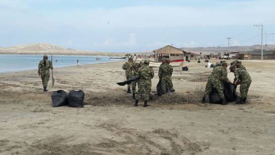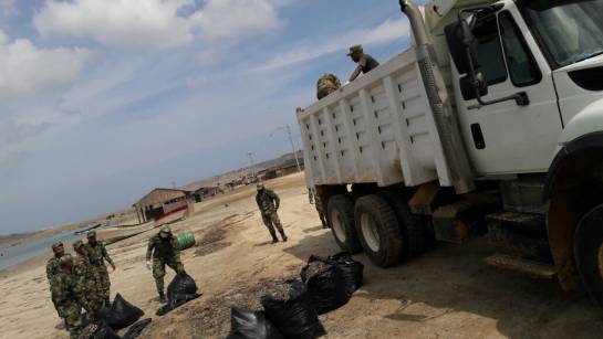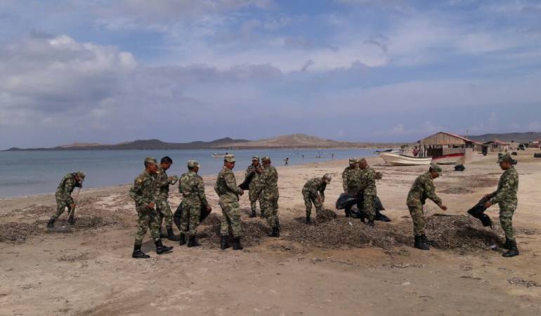Los militares están en el Cabo de La Vela desde los últimos días y se dedican a limpiar las playas y a reconstruir quioscos que quedaron arruinados con el paso del huracán Matthew.