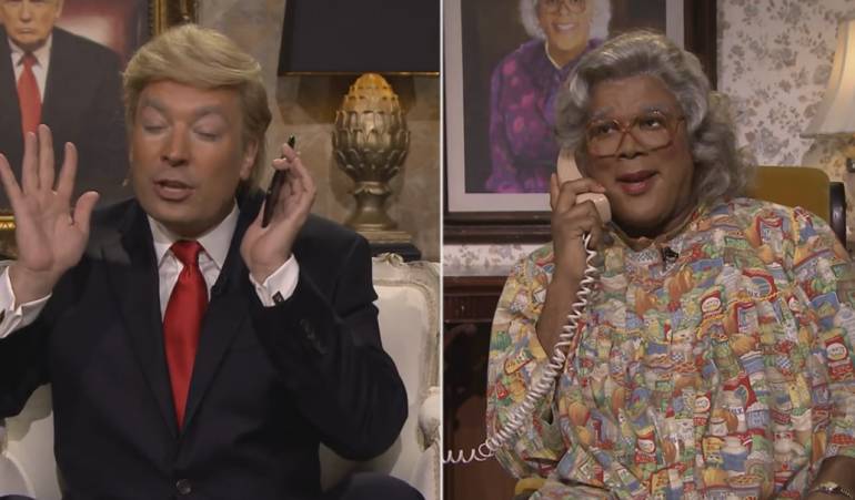 En la pieza humorística, Fallon personifica a Donald Trump en un escenario hipotético en el que el magnate llama vía telefónica a los votantes indecisos para convencerlos de votar en favor de su proyecto, siendo en este caso su interlocutor el también actor humorístico Tyler Perry, personificando su papel de Madea.