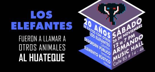 ‘Al Huateque oficial de Los Elefantes’ la fiesta de celebración de cumpleaños en la que asistirán ‘Desorden Público’ (Venezuela) y ‘Elemento Rústico’ (México) este 26 de noviembre en Armando Music Hall en Bogotá.