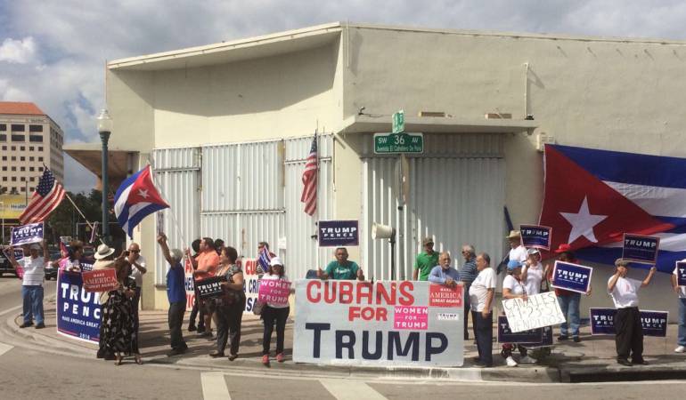 A solo 30 metros con un café en mano está Susana Peréz, viendo la manifestación de sus compatriotas. Dice que es horrible que Trump llegue a la presidencia y justifica que los cubanos voten por Trump en el hecho de que son republicanos. "Todos los republicanos aunque fuera un monkey el que esté ahí, votarían por republicanos, sin importar nada", argumenta Susana.