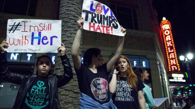 Sin embargo, las manifestaciones en Estados Unidos han estado lejos de ser "pequeñas" pues han sido miles los que han salido a las calles de las principales ciudades para dejar claro que no aceptan la victoria Trump y que no es ni será su presidente.