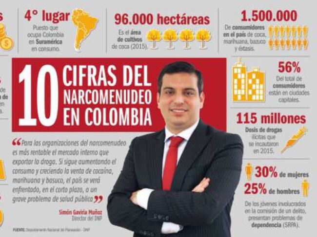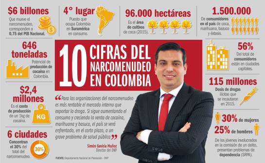 El narcomenudeo en Colombia mueve alrededor de 6 millones de pesos anuales, confirmó el director de Planeación Nacional, Simón Gaviria.