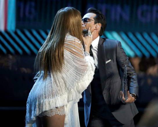 Durante uno de los momentos más esperados de la entrega de los Latin Grammy, el reconocimiento a Marc Anthony como personaje del año, el cantante neoyorkino y su exesposa la también artistas Jennifer Lopez sorprendieron a los asistente de la gala al darse un beso, aunque el cantante aclaró en su discurso que Jlo era como su “hermana”, al parecer eso no convenció del todo a Shannon De Lima su actual esposa.