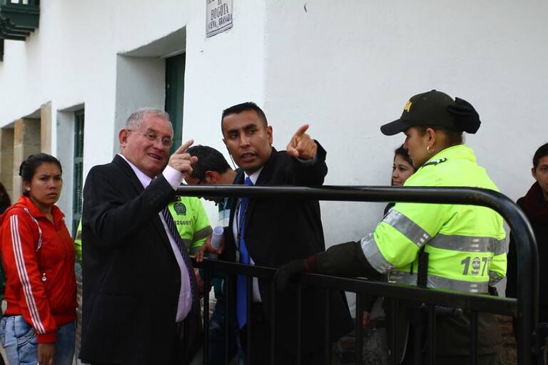 EL delegado de las FARC en el mecanismo de monitoreo del alto el fuego, Luis Alberto Albán, alias "Marcos Calarcá", visitó hoy las instalaciones del teatro para enterarse del protocolo de la actividad.