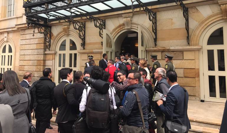 En medio de un fuerte dispositivo de seguridad los guerrilleros llegaron a bordo de un bus cuatro camionetas blindadas al centro de Bogotá.