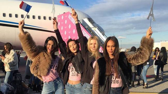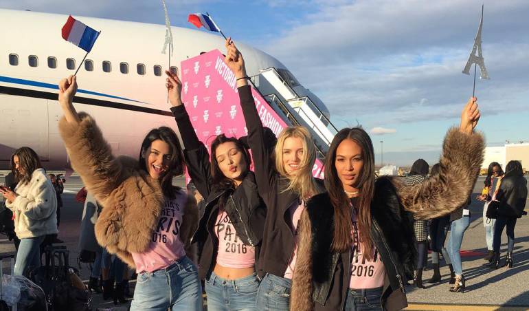 Kendall Jenner, Bella Hadid y muchos más de los ángeles de Victoria’s Secret, se acaban de montar en un avión con rumbo a París, ciudad en la que realizarán el famoso desfile anual de la compañía.