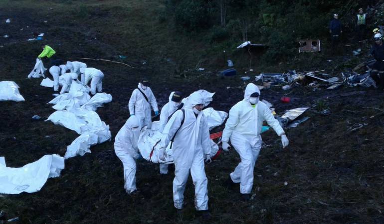 El proceso de identificación de los cuerpos de las víctimas del accidente del avión de Lamia se realizará en Medellín, por parte de Medicina Legal será un equipo de 45 forenses los encargados de la plena identidad de los cuerpos, con el apoyo de miembros el CTI de la Fiscalía en colaboración con los peritos forenses de Brasil y Bolivia.