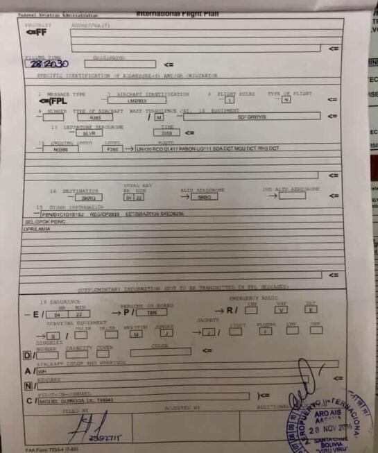 Cuando Quispe presentó su plan de vuelo, documento que fue publicado por el diario El Deber, Castedo le hizo cuatro observaciones, tres de ellas tan graves, que a juicio de pilotos consultados por Caracol Radio, era suficientes para impedir la salida del RJ 85 de matrícula CP2933. La peor de todas, que el combustible cargado equivalía al tiempo en ruta. (VER FOTO)