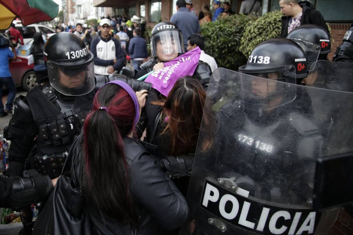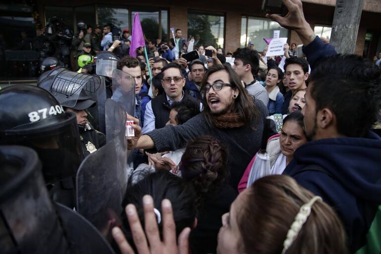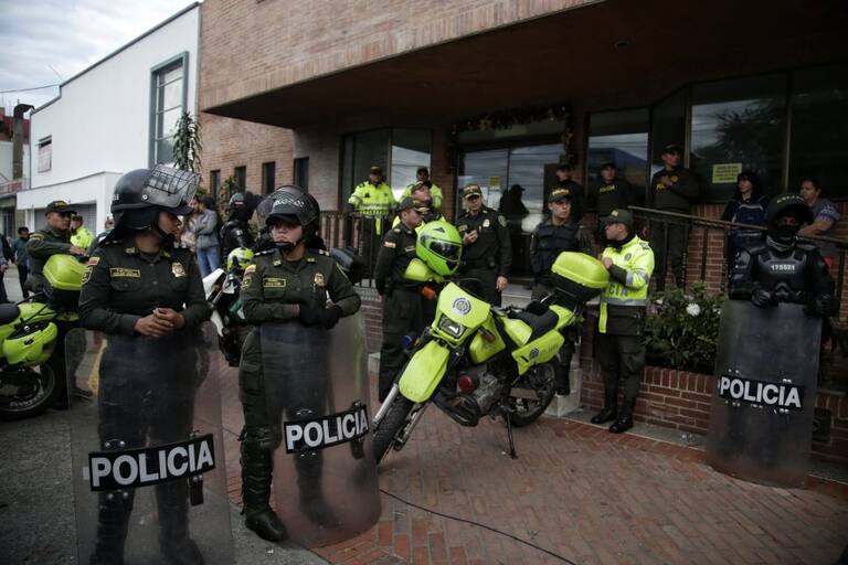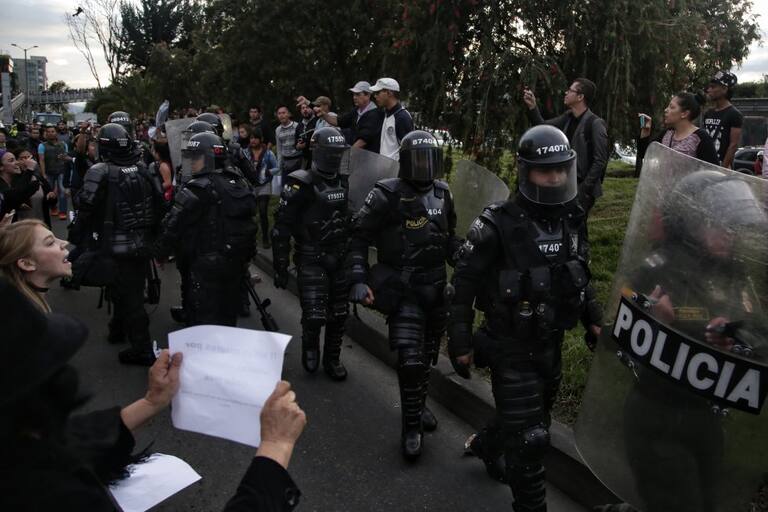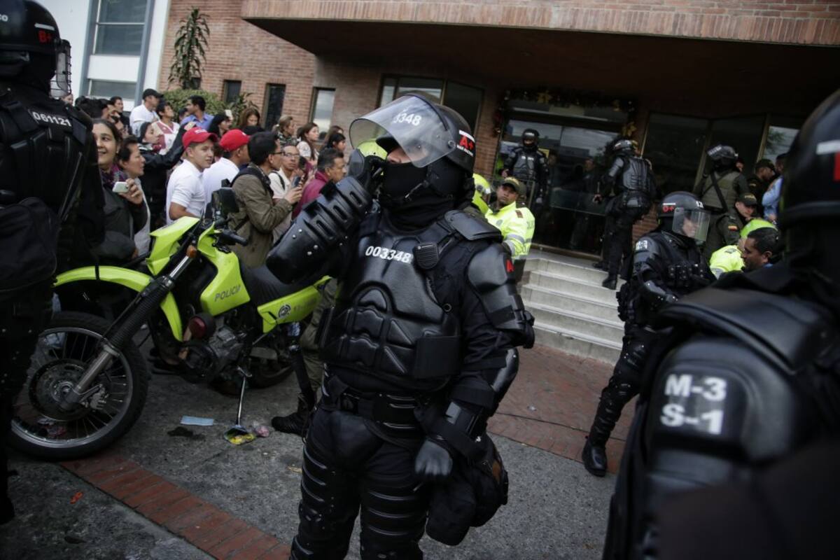 Es escuadrón Móvil Anti disturbios (ESMAD) junto con la Policía Nacional escoltaron la salida de Uribe.