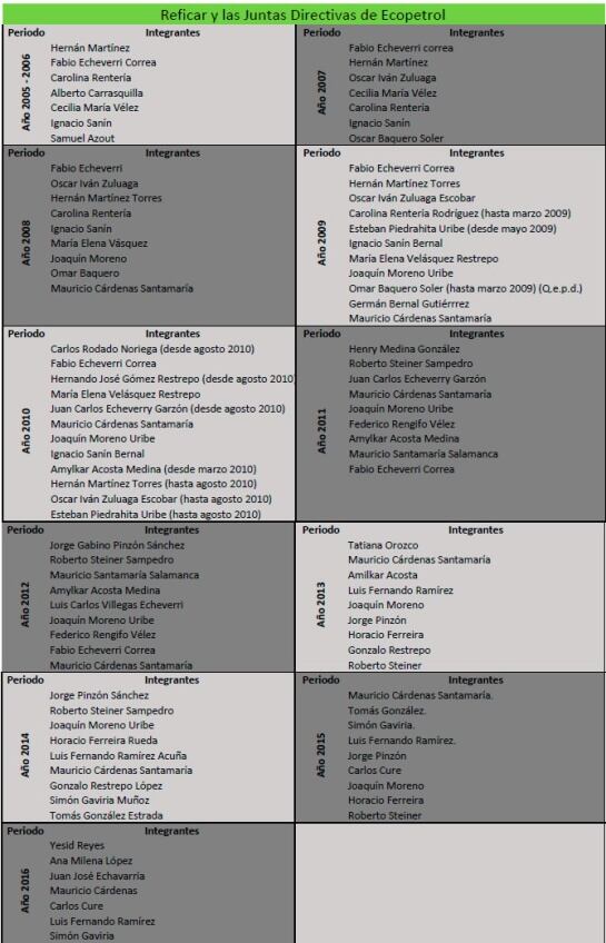 Estas son las juntas directivas de Ecopetrol encargadas de aprobar el plan de inversiones en la modernización en la Refinería de Cartagena, Reficar.
