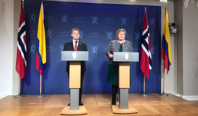Al término de un encuentro bilateral con la primera ministra noruega, Erna Solberg, con el presidente Juan Manuel Santos, los jefes de Estado defendieron la integridad del Premio Nobel y el Comité que entrega dicho reconocimiento.