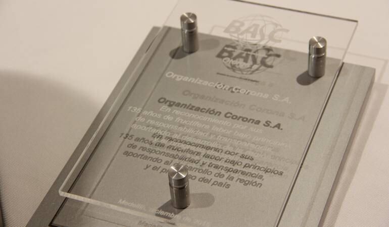 En el marco de la asamblea anual del Business Alliance for Secure Commerce (BASC), la multinacional colombiana Corona fue reconocida por su trayectoria y compromiso con el desarrollo de Colombia en el marco de los 135 años de la empresa. Así mismo, Corona BASC certificó nuevamente, y por 16 años consecutivos, las operaciones de manufactura y logística de las plantas productivas exportadoras de Corona en el país por sus sistemas de gestión en prevención, control y seguridad de exportaciones.