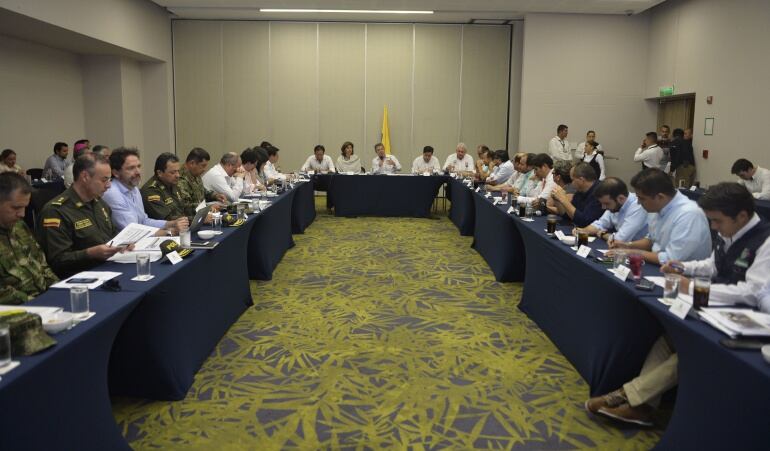 El mandatario asiste a la reunión con la canciller María Ángela Holguín, el ministro del Interior, Juan Fernando Cristo, y otros funcionarios y mienbros de los organismos de seguridad.