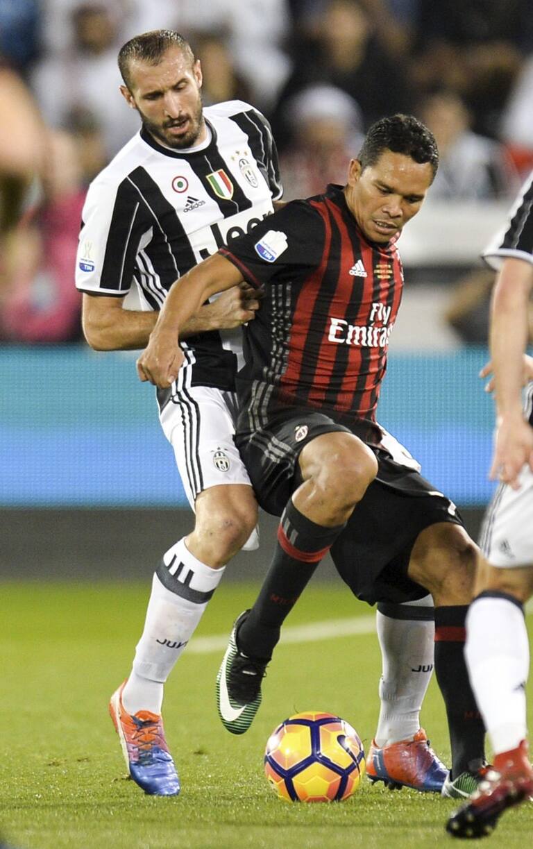 Bacca en acción ante la marca de Chiellini.