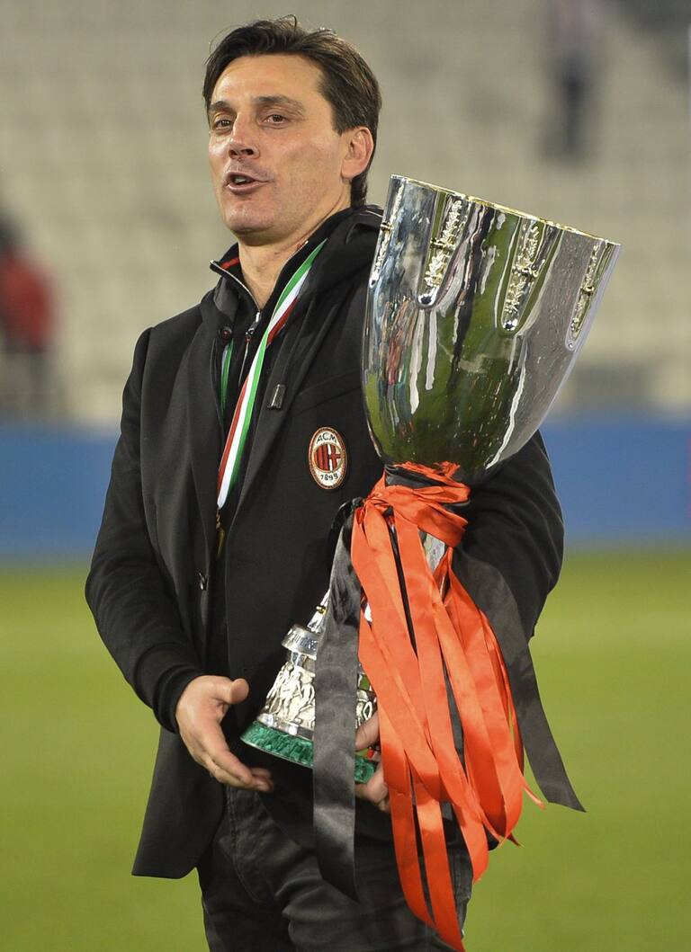 Montella con el trofeo de la Supercopa de Italia.