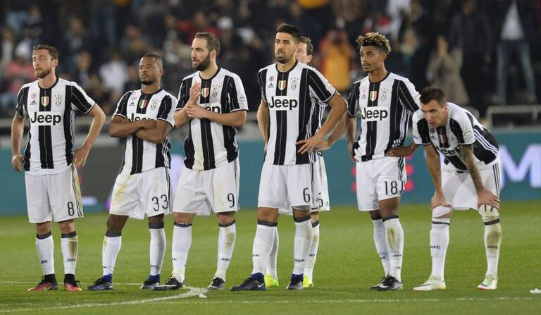 Los jugadores de Juventus tras la derrota en penales ante Milan.