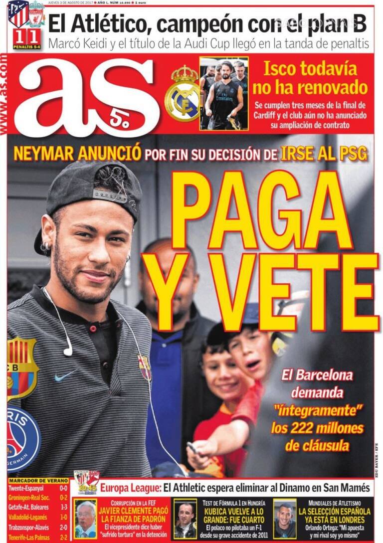 'Hasta nunca', 'Paga y vete', así reaccionan los medios ante la salida de Neymar