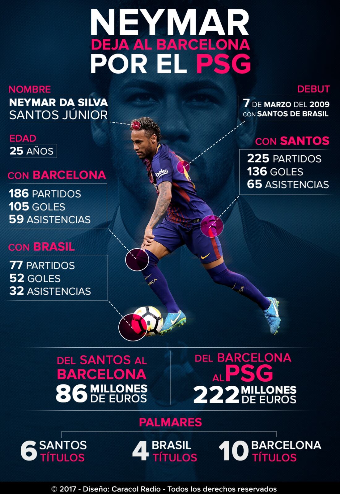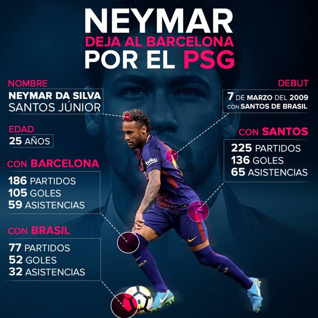En números: la carrera deportiva de Neymar, el nuevo crack del PSG
