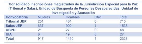 El Comité de Escogencia para la selección de los miembros del Sistema Integral de Verdad, Justicia, Reparación y No Repetición cerró las inscripciones para elegir a 51 magistrados de la JEP, para el funcionamiento del nuevo tribunal de paz.