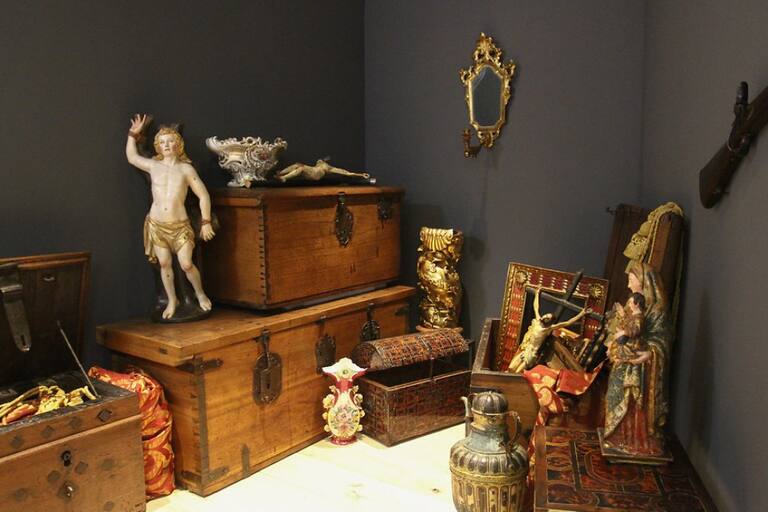 Dentro de las piezas maestras del museo se encuentran: Portada Dosel, Mono de la Pila, Símbolo de la Trinidad, San Joaquín y la niña María, y el Marqués y Marquesa de San Jorge.