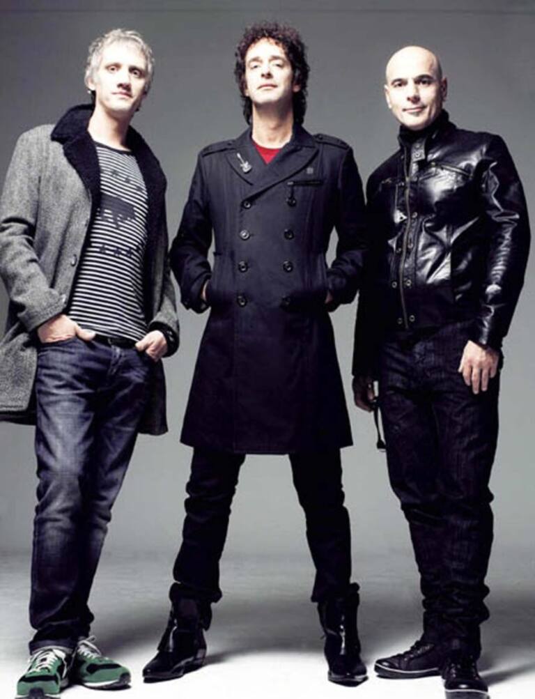 La banda de rock argentina Soda Stereo, conformada por Gustavo Cerati, Zeta Bosio y Charly Alberti.