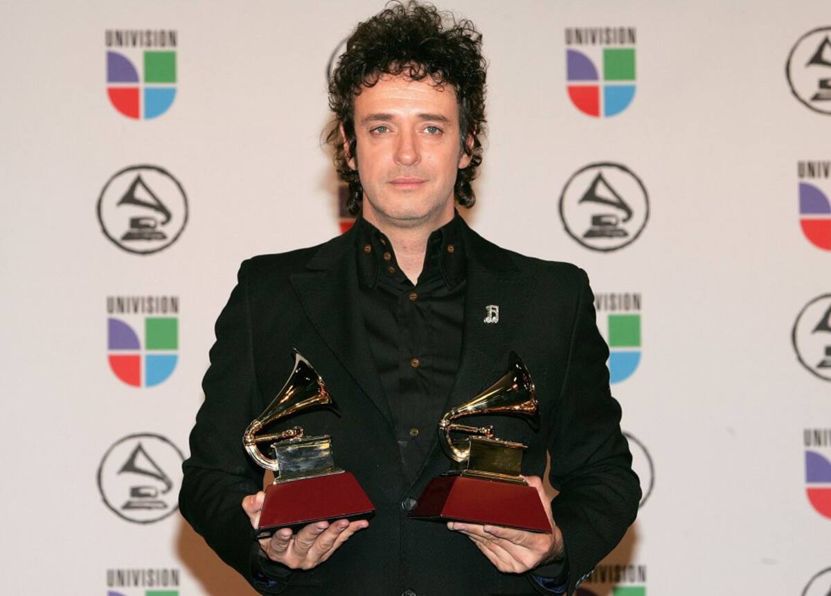Cerati posa con sus premios en la sala de prensa en el 7 º Annual Latin Grammy Awards en noviembre de 2006.