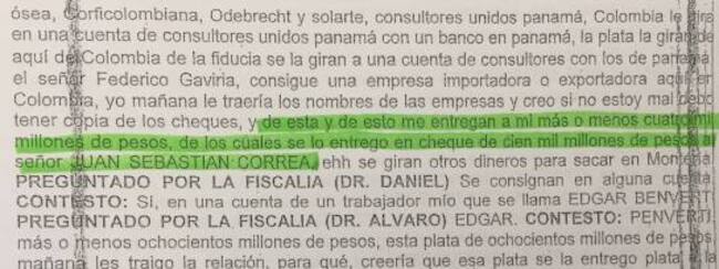 En la declaración aparece el nombre del ex ministro de Agricultura Andrés Felipe Arias, según Bula, muy amigo de Federico Gaviria y de Odebrecht. Aunque dice desconocer si recibió sobornos, lo que aseguró, por voz de Gaviria, era que la multinacional le hacía pagos mensuales por gratificación.