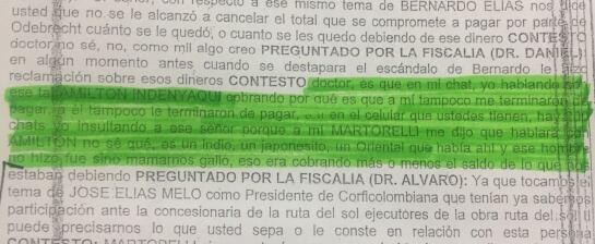 Otto aseguró, en la declaración que da inicio al proceso de colaboración con la Fiscalía, que fueron repetidas las ocasiones que le increpó al presidente de Odebrecht de entonces, Eleuberto Martorelli, por los pagos que estaban pendientes una vez se firmó el otro Si de la Vía Ocaña – Gamarra.