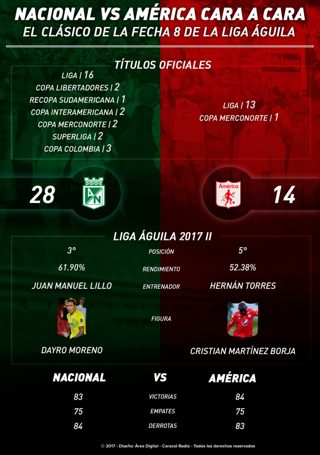 El cuadro vallecaucano lidera el historial de enfrentamientos con 84 triunfos, uno más que su rival.