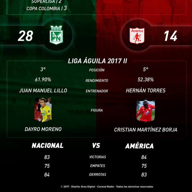 Nacional Vs. América, cara a cara previo al clásico de la octava fecha de la Liga