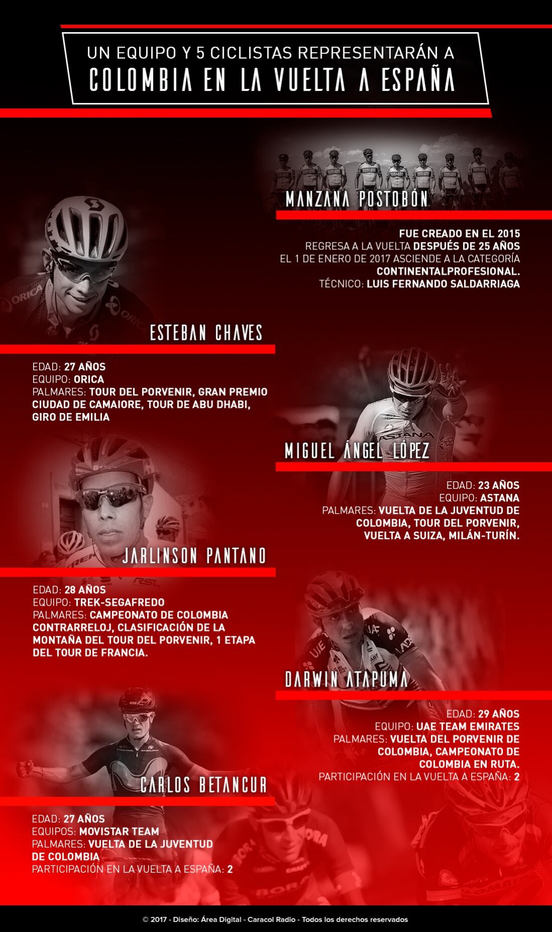 Un equipo y cinco ciclistas colombianos estarán en La Vuelta a España 2017