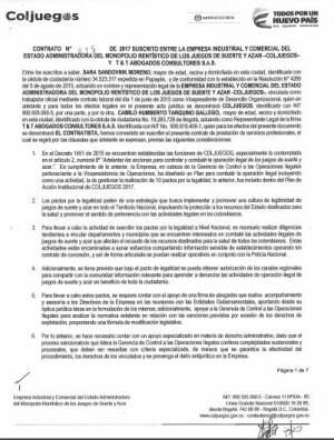 El ex magistrado este año, en febrero, recibió otro contrato con Coljuegos para asesorar a la entidad en asuntos administrativos y por valor de 109 millones de pesos, que estará vigente hasta el 30 diciembre.