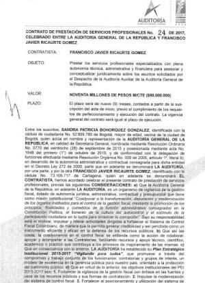 En el caso de Francisco Ricaurte su escenario fue la Auditoria y Fonade. El Tiempo reveló que fueron al menos cinco contratos superarían los 800 millones de pesos, uno sólo, con Fonade, fue de 340 millones y está por recibir uno con la Auditoría por 90 millones.