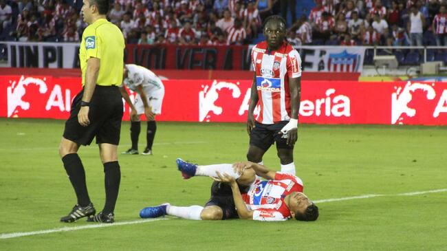 El delantero anotó en el triunfo de Junior 3-0 sobre Once Caldas por la novena fecha de la Liga Águila, pero sufrió un golpe en el tobillo que le obligó a dejar el partido antes de finalizar el primer tiempo.