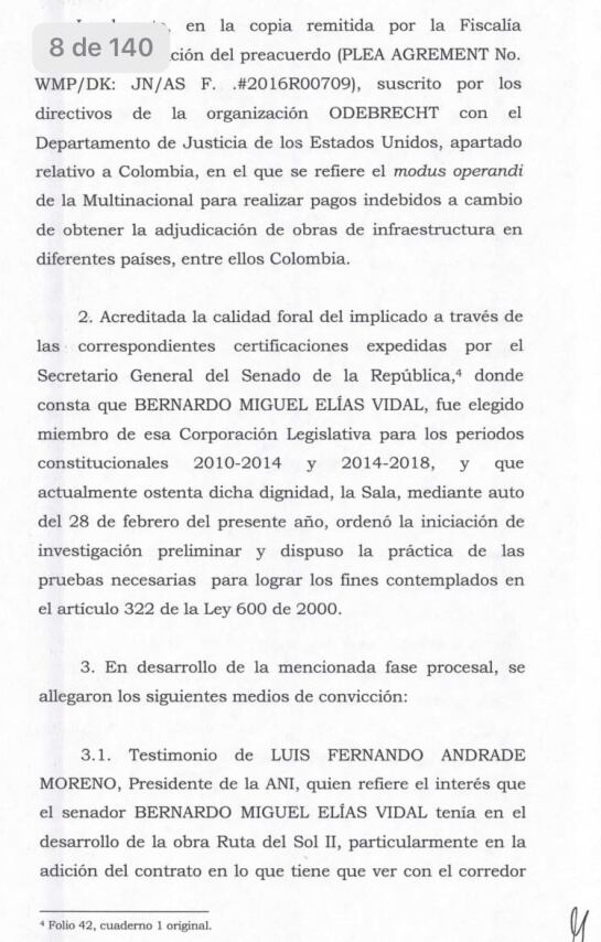 El representante legal de Odebrecht en Colombia dijo en la Corte cómo se llegó a la adición del corredor vial Ocaña Gamarra, que, según él, fue ofrecida por la ANI a la concesionaria ruta del Sol II. El funcionario habló de las exigencias de la firma en torno al aumento de tarifas de peajes, la instalación de nuevas casetas de peajes y el anticipo de vigencias futuras.