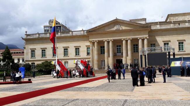 En la Plaza de Armas de la Casa de Nariño, en una ceremonia se presentó uno de los tres papamóviles que acompañarán en los recorridos por tierra al sumo pontífice´.