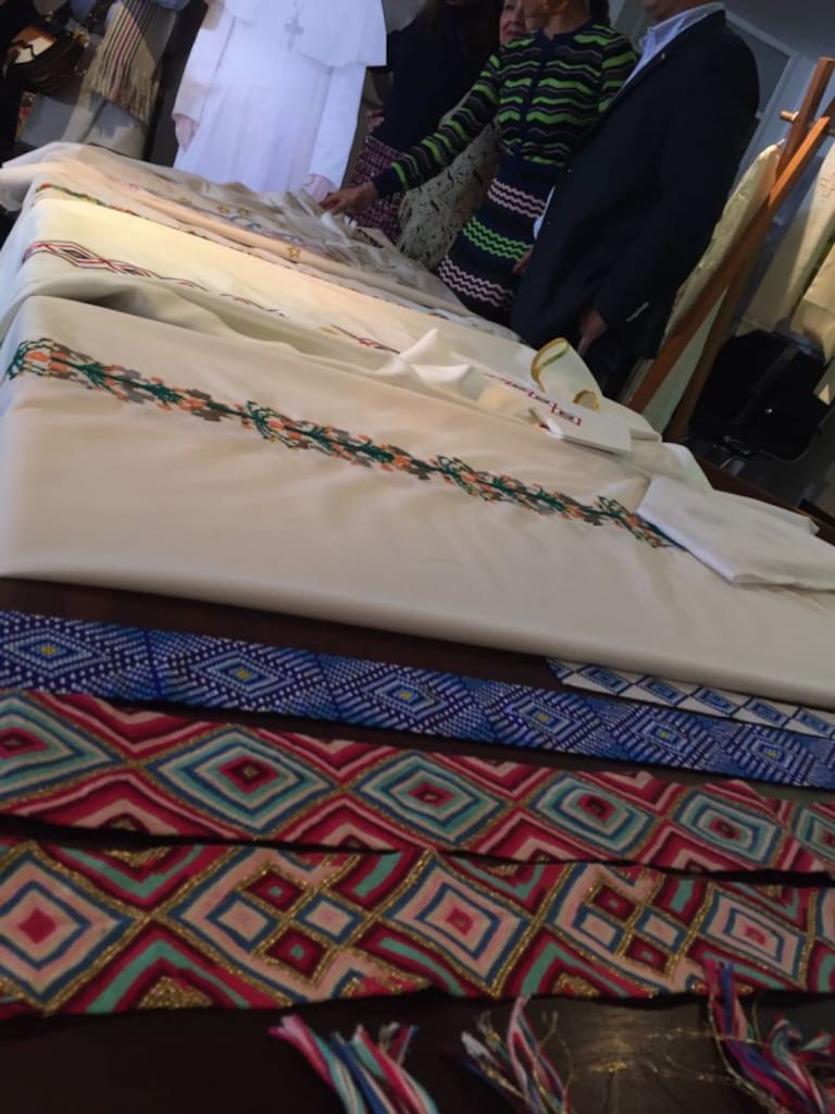 El Episcopado colombiano presentó las vestiduras litúrgicas que usará el papa Francisco en las eucaristías de Bogotá, Medellín y Cartagena, las cuales se inspiraron en varias regiones del país.