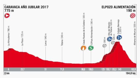 Sobre el papel será una fracción de transición, con más de 100 kilómetros sin ascensos significativos; sin embargo, la cumbre al Alto de morrón (premio de tercera categoría) y el Collado Bermejo (premio de primera) abren la puerta a las sorpresas.