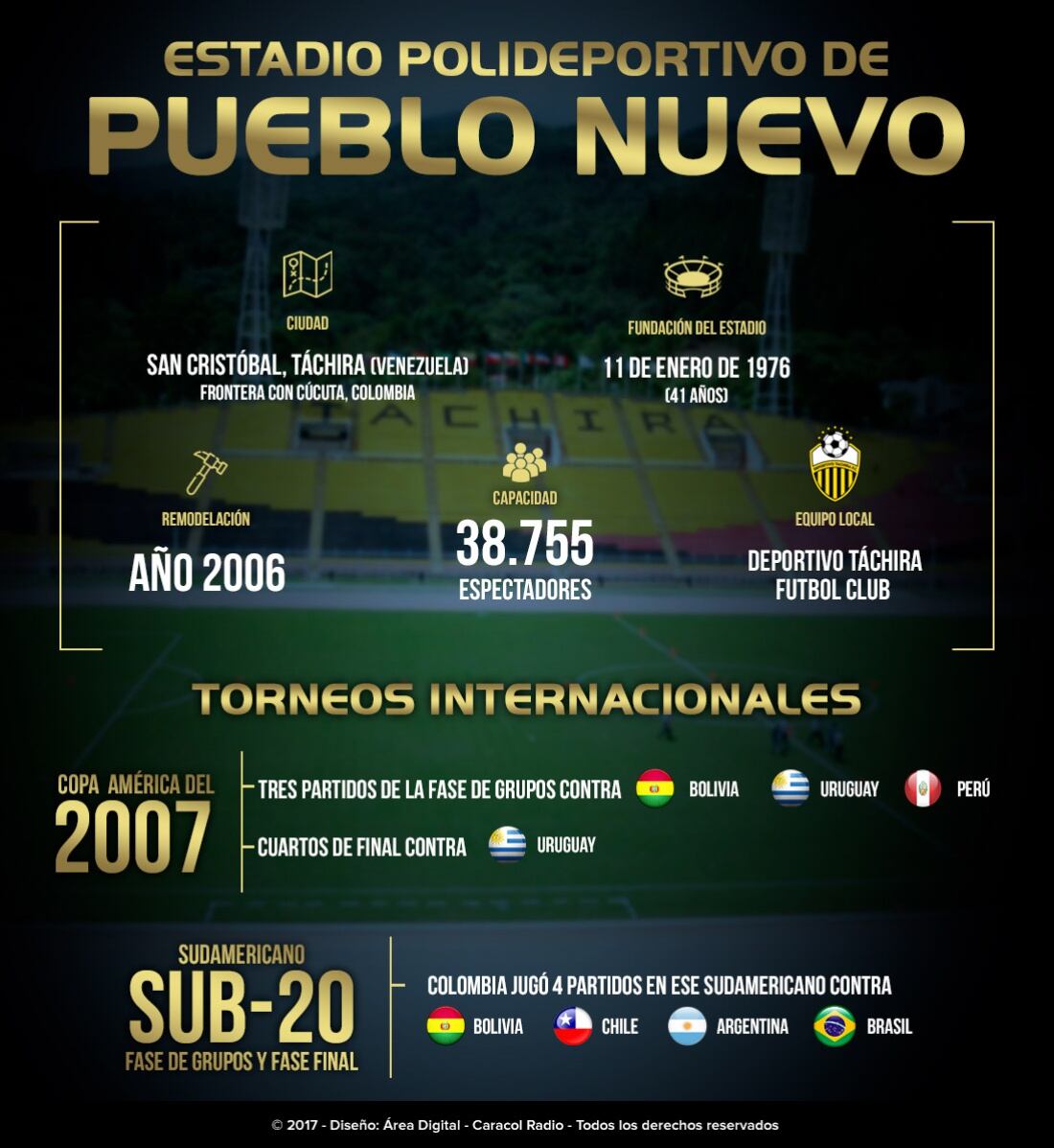 El escenario deportivo tiene capacidad de 38755 hinchas y es la casa del Deportivo Táchira.