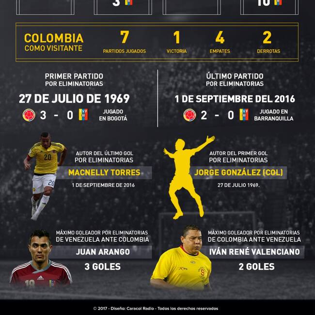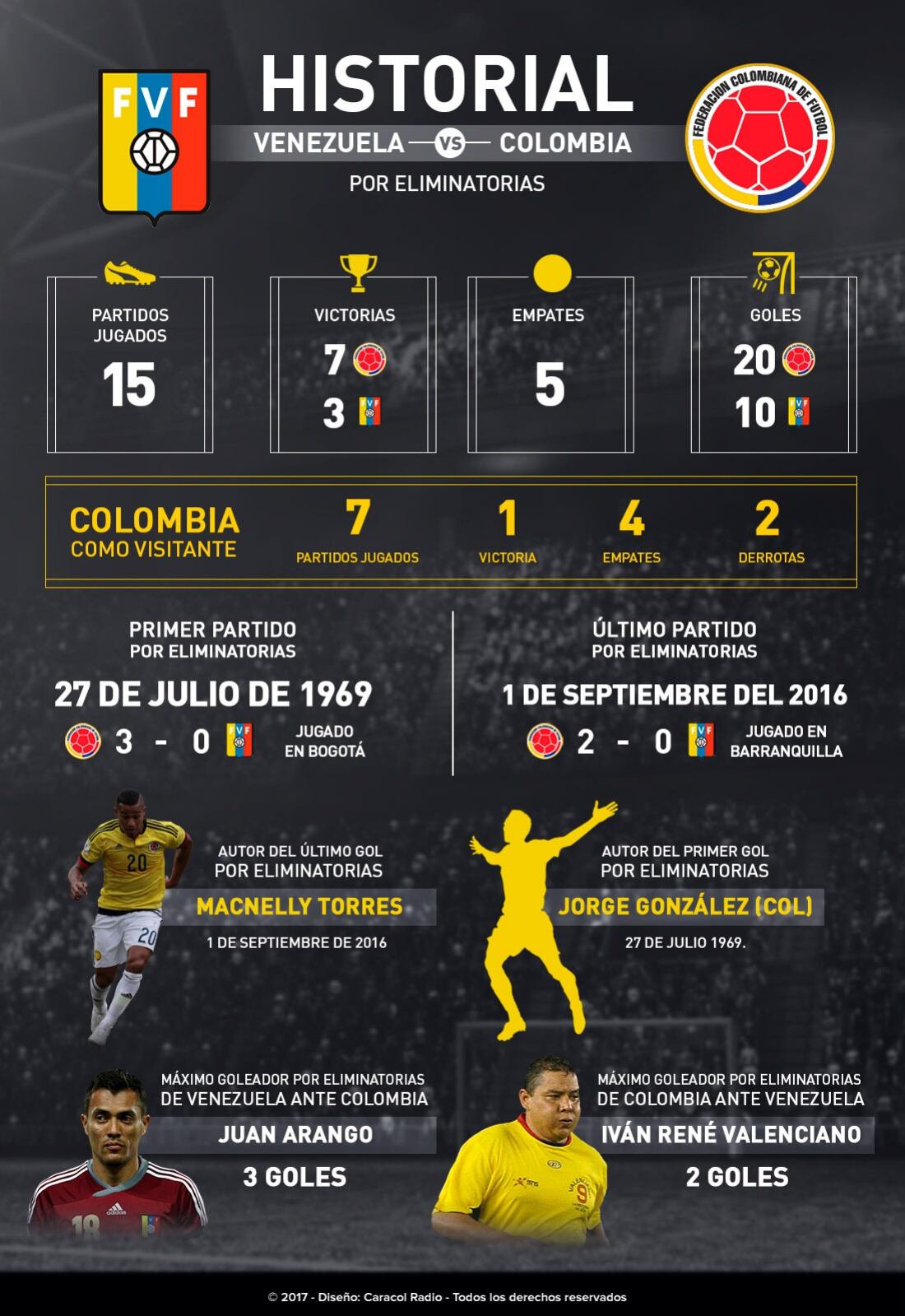 Venezuela Vs. Colombia, historial por Eliminatorias