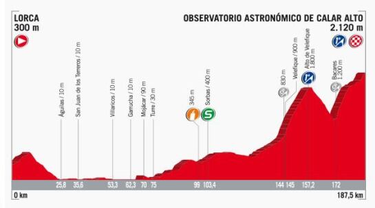 Pese a que Christopher Froome luce como líder solitario, el recorrido de la jornada parece oportuno para atacarle. El británico es fuerte en los ascensos cortos; mientras que la montaña de este miércoles, el Observatorio Astronómico de Calar Alto, parece más preciso para los escaladores natos.