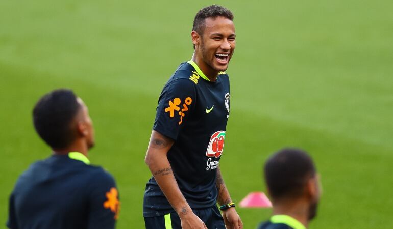 Neymar, Thiago Silva, Marcelo y Dani Alves, protagonistas de un gran entrenamiento.
