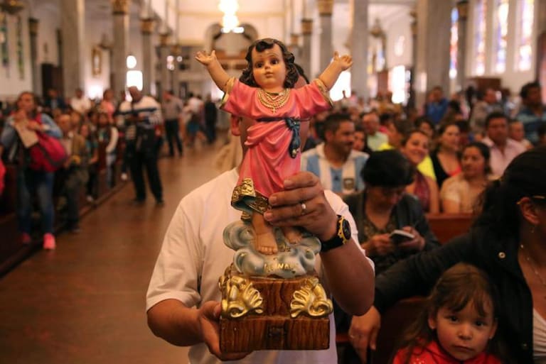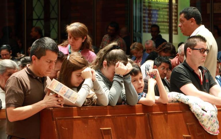 Feligreses mientras rezan, en la Iglesia Divino Niño del 20 de Julio, en Bogotá