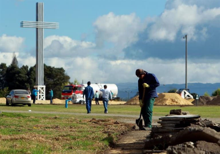 Trabajadores adecuan el parque Simón Bolívar para la eucaristía del papa Francisco