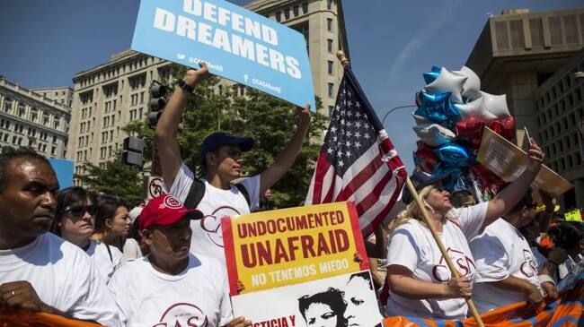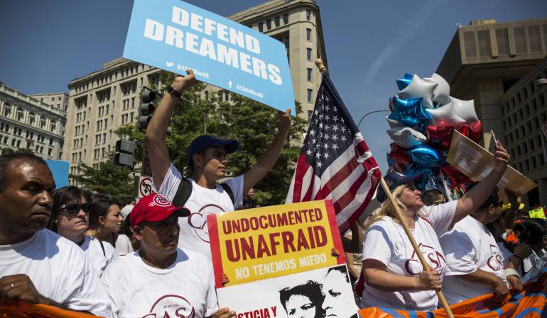 Miles de inmigrantes y ciudadanos estadounidenses salieron a las calles de Nueva York y Washington a protestar por el desmonte del programa conocido como ‘DACA’, que beneficiaba a cerca de 800.000 jóvenes inmigrantes indocumentados y les dio permisos de trabajo y residencia en Estados Unidos.