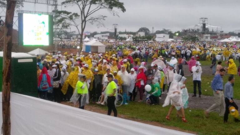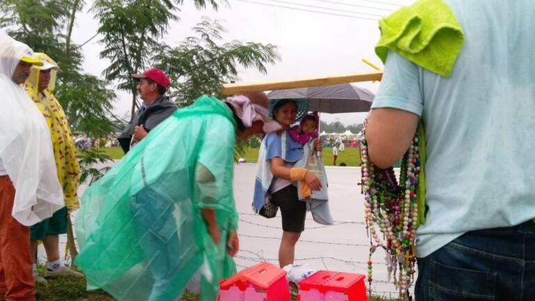 La lluvia no es un impedimento para que feligreses en Villavicencio vean al papa