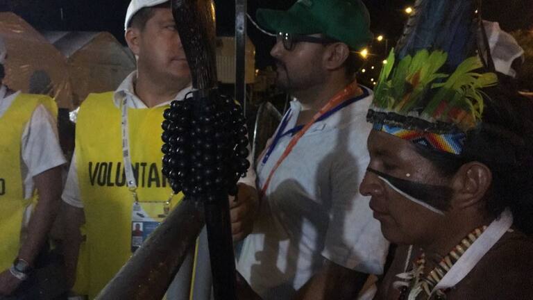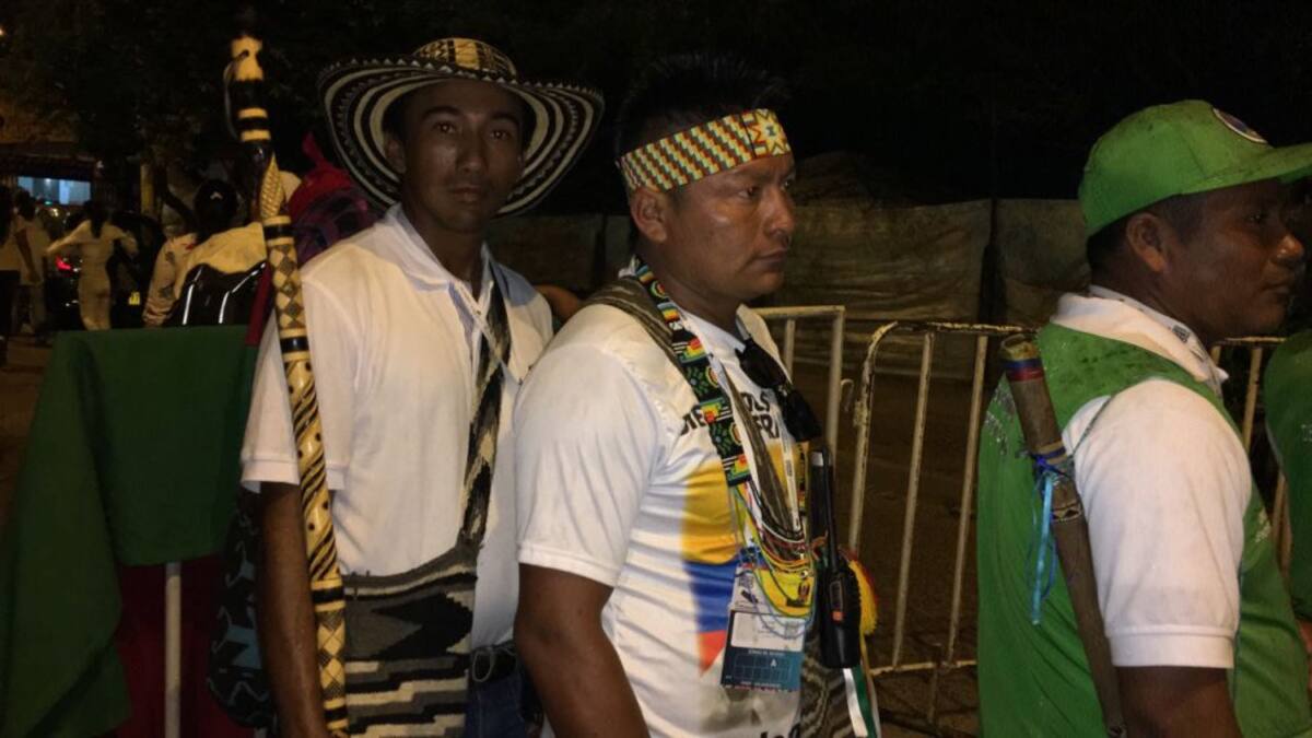 Guardia indígena espera para entrar a ver al sumo pontífice