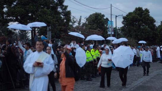 Añadió que en “esta querida ciudad, Bogotá, y este hermoso País, Colombia, tienen mucho de estos escenarios humanos presentados por el Evangelio. Aquí se encuentran multitudes anhelantes de una palabra de vida, que ilumine con su luz todos los esfuerzos y muestre el sentido y la belleza de la existencia humana. Estas multitudes de hombres y mujeres, niños y ancianos habitan una tierra de inimaginable fecundidad, que podría dar frutos para todos. Pero también aquí, como en otras partes, hay densas tinieblas que amenazan y destruyen la vida: las tinieblas de la injusticia y de la inequidad social; las tinieblas corruptoras de los intereses personales o grupales, que consumen de manera egoísta y desaforada lo que está destinado para el bienestar de todos; las tinieblas del irrespeto por la vida humana que siega a diario la existencia de tantos inocentes, cuya sangre clama al cielo; las tinieblas de la sed de venganza y del odio que mancha con sangre humana las manos de quienes se toman la justicia por su cuenta; las tinieblas de quienes se vuelven insensibles ante el dolor de tantas víctimas. A todas esas tinieblas Jesús las disipa y destruye con su mandato en la barca de Pedro: «Navega mar adentro».