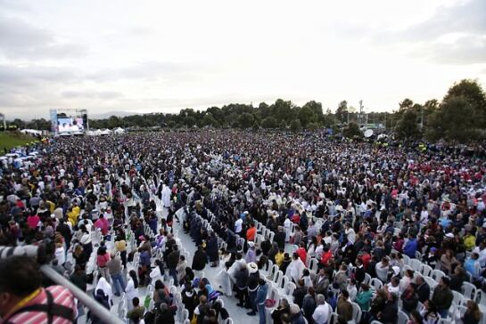 También multitudes que viven en Bogotá y en Colombia pueden llegar a ser verdaderas comunidades vivas, justas y fraternas si escuchan y acogen la Palabra de Dios. En estas multitudes evangelizadas surgirán muchos hombres y mujeres convertidos en discípulos que, con un corazón verdaderamente libre, sigan a Jesús; hombres y mujeres capaces de amar la vida en todas sus etapas, de respetarla, de promoverla.