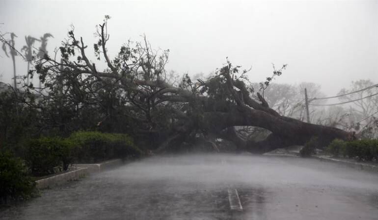 En Miami ya se registran varios daños materiales, la caída de árboles, avisos de publicidad, señales de tránsito y enormes grúas de construcción.